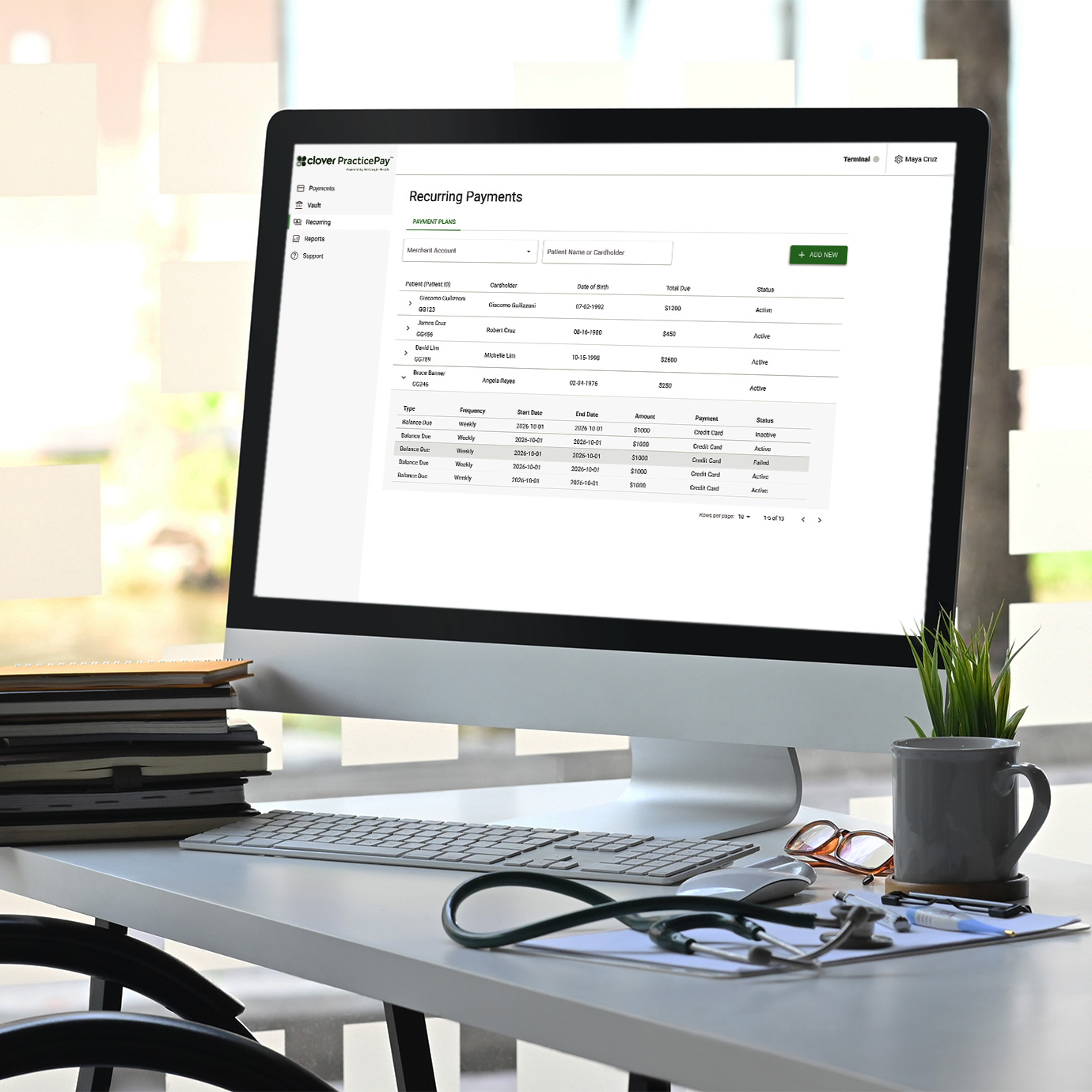 View all payment activity and outstanding balances on your Clover PracticePay Dashboard